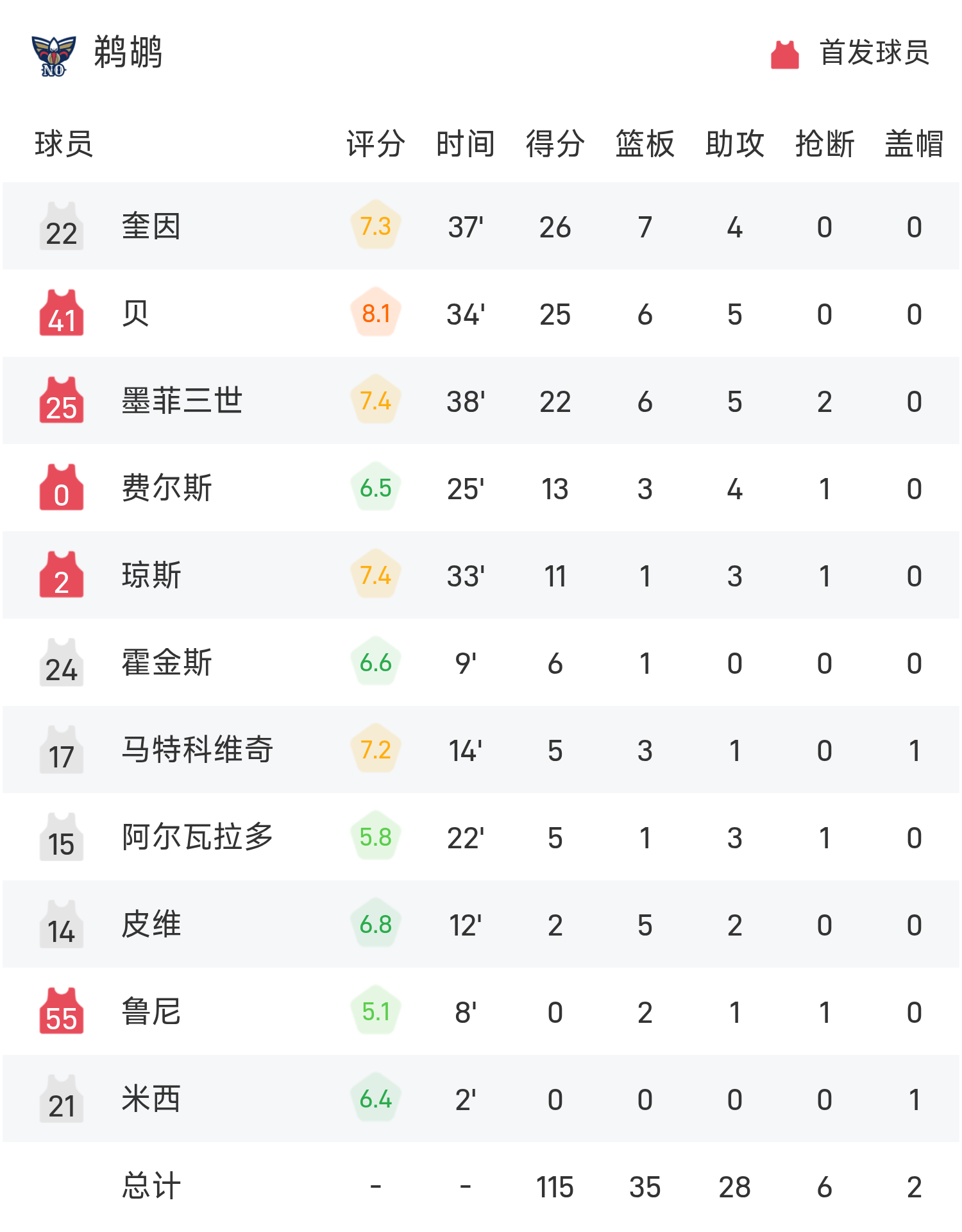 6686体育官网11月13日讯 25/26赛季NBA 常规赛,鹈鹕对阵开拓者。双方全场战罢,鹈鹕117-125不敌开拓者。夏普砍下全场最高的35分5板3助,率领开拓者胜利取胜。