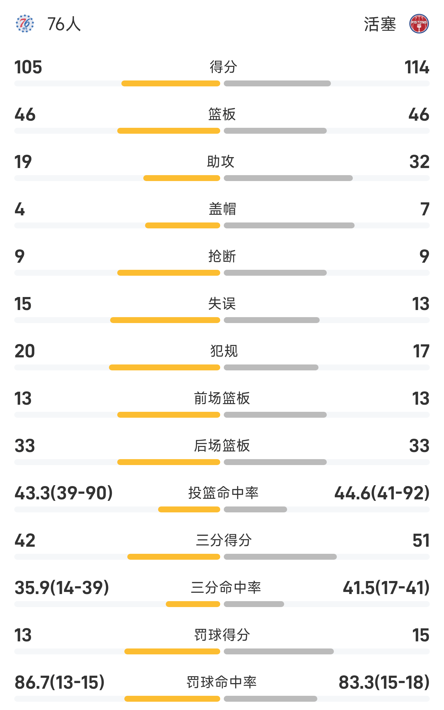 NBA杯战报:詹金斯19分8助,活塞114-105击败76人