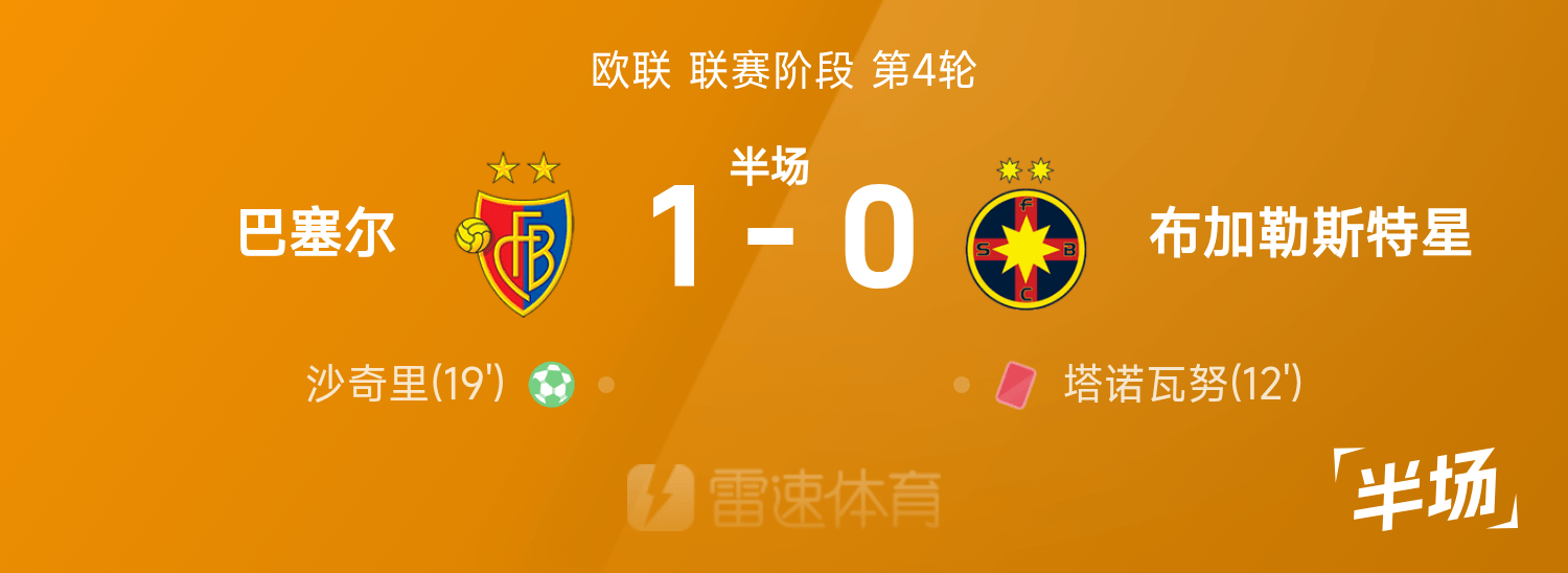 6686体育官网11月07日讯 25/26赛季欧联联赛事阶段第4轮,巴塞尔迎战布加勒斯特星。半场战罢,双方赛果分暂为巴塞尔1-0布加勒斯特星,沙奇里破门建功,塔诺瓦努染红。