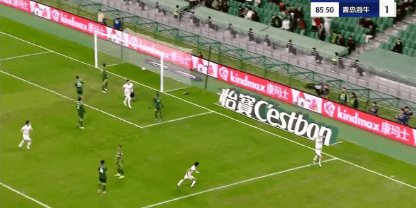 41’海牛边线球制造威胁,随后三秒区内的一脚小角度打门打在边网