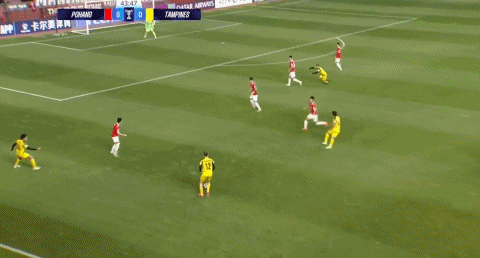 87’赵尚赫跟进射门破门,浦项铁人扳平赛果分,暂1-1淡滨尼流浪者