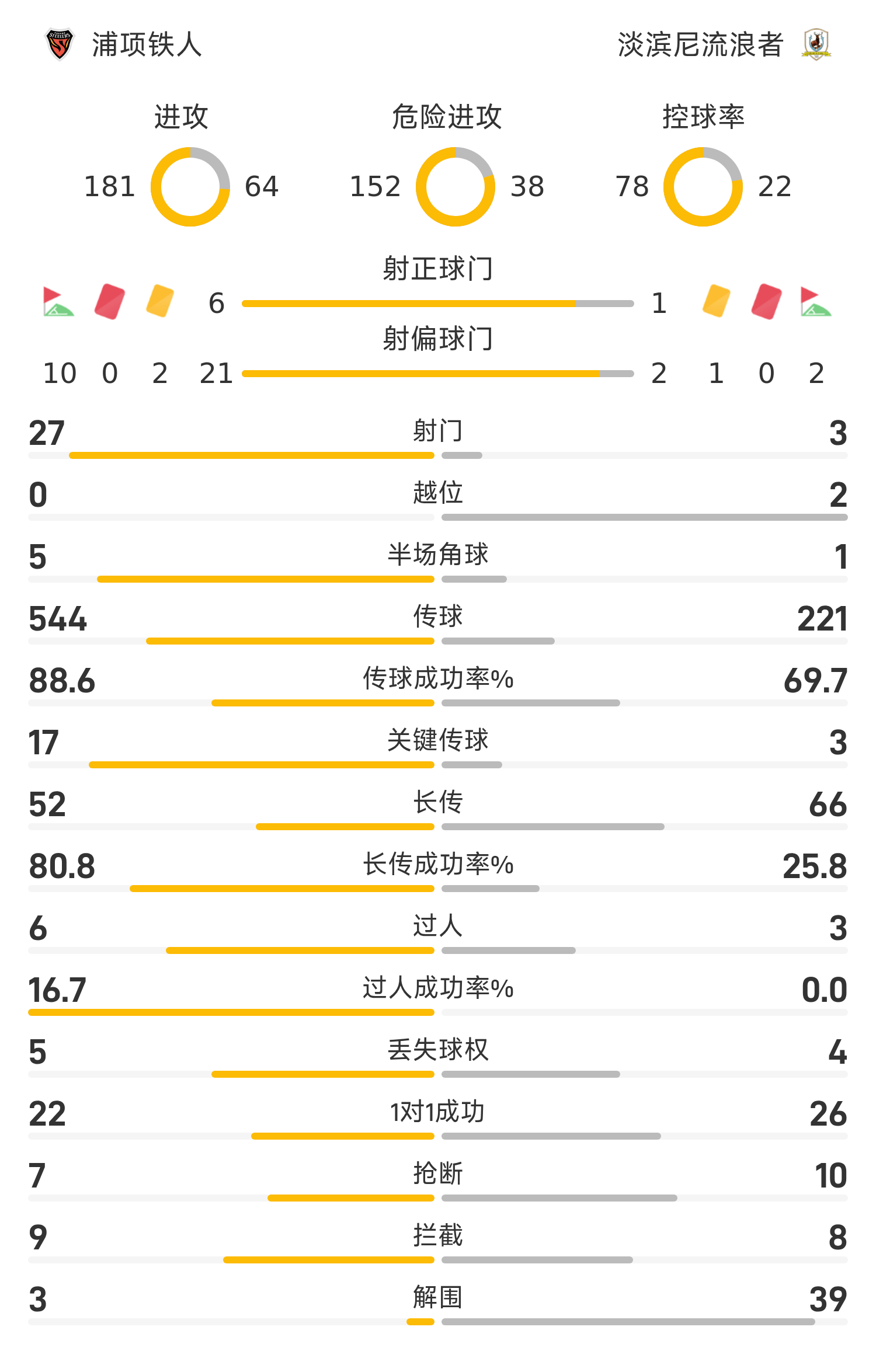 56’郭家溍单刀破门,淡滨尼流浪者反客为主,暂1-0浦项铁人