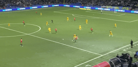 27’比利时前场撞墙协作,范纳肯弧顶抽射攻门未能发上力量