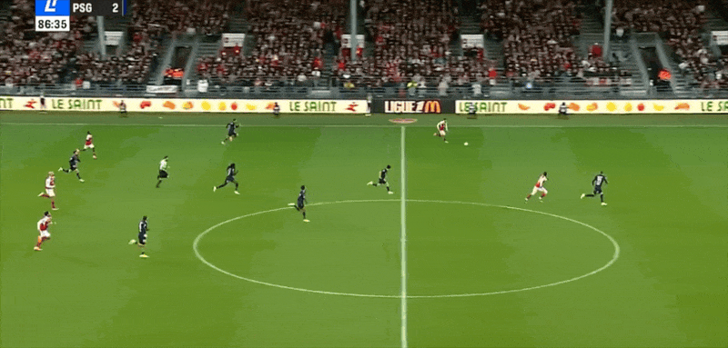 36’维蒂尼亚灵性做球,马尤鲁尝试一脚外围射门弹地轻快被守门员没收