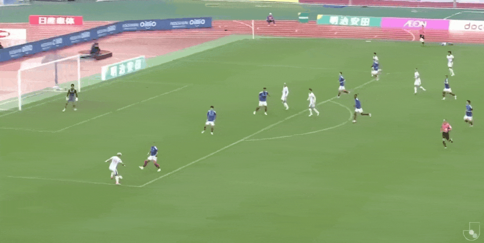 2’菅大辉定位球开向三秒区,佐佐木翔顶球攻门偏出